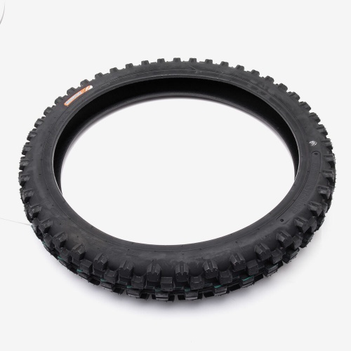 A motorcycle tire is a crucial component that provides traction, stability, and shock absorption for the motorcycle. It consists of several layers, including a rubber tread for grip, a reinforced carcass for structural strength, and inner linings to contain air or sealant. Motorcycle tires are designed for specific riding conditions, such as road, off-road, or sport, and are available in various sizes and tread patterns to match the motorcycle's performance and handling requirements. Proper tire maintenance, including regular checks for pressure and tread wear, is essential for safe and efficient riding.
